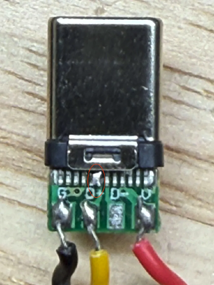 For the USB connector, one of the pins needs to be jumped/shorted to another pin. Use multi-tester to verify the connections.
